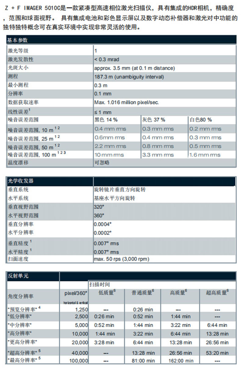 Z+F 5010C是Z+F公司具有跨时代意义的一款产品,全世界首款内置内置同轴数码相机的三维激光扫描仪,采用HDR技术的全景8000万高像素成像技术,可以采集真彩色的点云数据,尤其适用于古建筑测绘,三维重建。